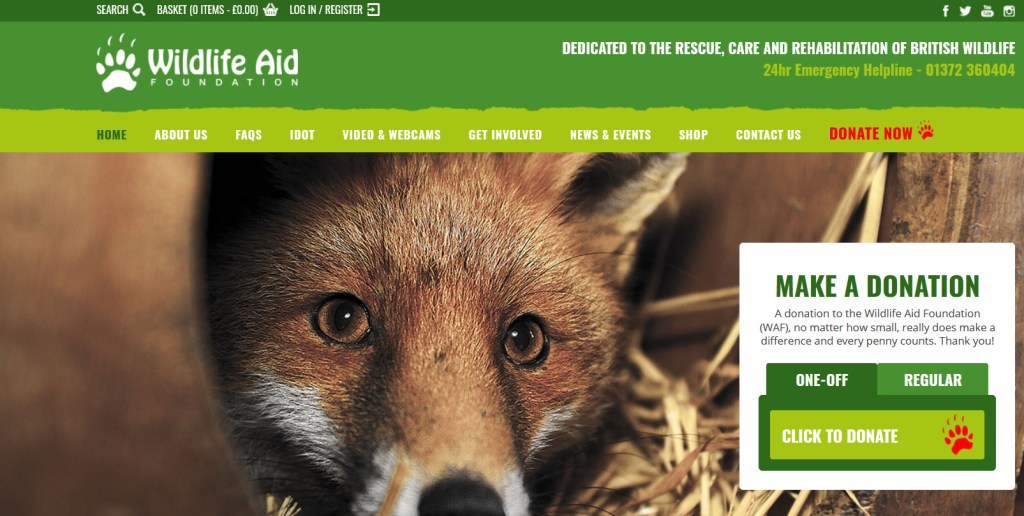 We really wanted to love this on the Wildlife Aid Foundation website. The paw print is adorable, reflecting the brand logo as well as the element of “cute” that we want to see with an animal charity. The Donate menu item really stands out despite not being a button, and the Make a Donation block is clean and clear. The eyes of the red fox look straight at you, helping to build an emotional connection to nudge you to complete your donation. Like I say, we really wanted to love this. Our only negative is the use of red text on a green background. Red/green colourblind is a known form of colourblindness and the contrast between the two hues is fairly weak. That being said, the text is pretty large which does help with accessability. We’d probably just look at tweaking that shade of red or make it an actual button with a paler background to be safe.